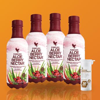 Скористайтеся вигідною пропозицією! Тільки в 13 квітня по 30 червня супер-набір – 4 пляшки Форевер Ягідний Нектар + Форевер Ектів Про-Бі можна придбати зі знижкою 10%. Комбінація натурального гелю Алое Вера у складі Ягідного Нектару та корисних бактерій, що містить Форевер Ектів Про-Бі, має ще більший оздоровчий ефект для організму завдяки синергії обох продуктів.